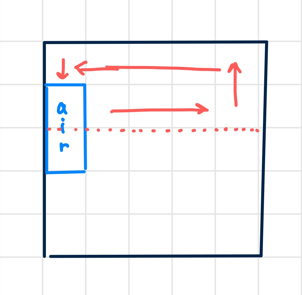 칸은 원래 배열에 빈칸인 '0'을 앞쪽에서부터 삽입해서 나간다라고 생각하면 이후에 공기청정기칸으로 먼지가 이동할 때 먼지가 없어지는 것도 쉽게 해결할 수 있다 !!!!