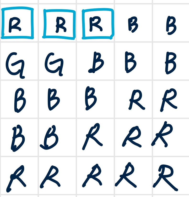 # R==G이니까 R을 G로 바꿔주어 생각한다.