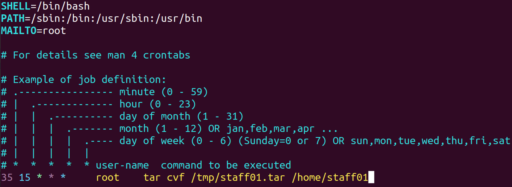 ์์คํ cron ์์ ์ crontab ๋ช ๋ น์ด๋ฅผ ํตํด์๊ฐ ์๋๋ผ, /etc/crontab ํ์ผ์ ํ ํ๋ฆฟ์ ์ด์ฉํ์ฌ /etc/cron.d ๋๋ ํ ๋ฆฌ์ ํ์ผ์ ์์ฑํ์ฌ ์์ ์ ์์ฝํ๋ค.