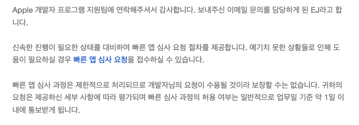 급하신 분들은 제 방법으로 한번 애플 리뷰 팀에 연락드려보시길 바랍니다 🍎