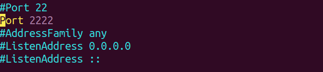 ๋จผ์ /etc/ssh/sshd_config ํ์ผ์ vim ํธ์ง๊ธฐ๋ก ์ด์ด์, Port 2222 ๋ก ์์ ํ๋ค.