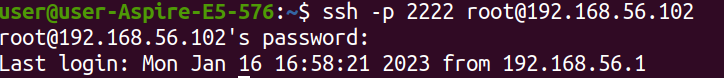 ssh -p 2222 root@192.168.56.102