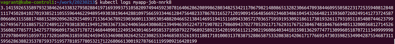 log를 찍어보면 pod 실행 후 파이에 대한 값이 출력된것을 확인할 수 있다.