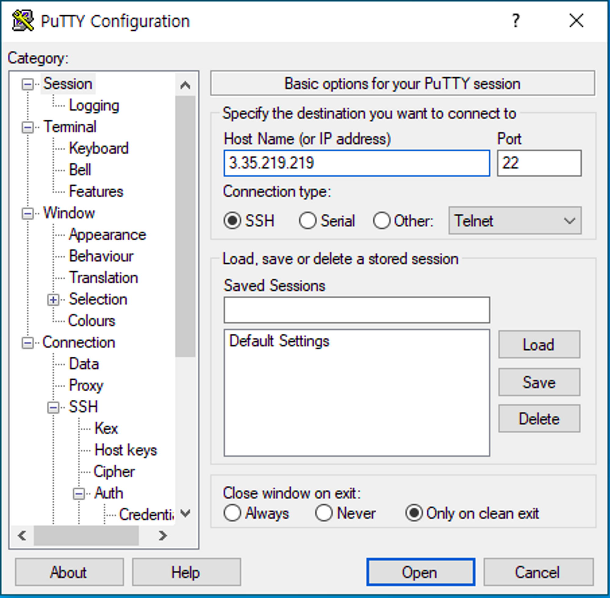 3. (Window의 경우) PuTTY를 사용하여 원격 접속하기