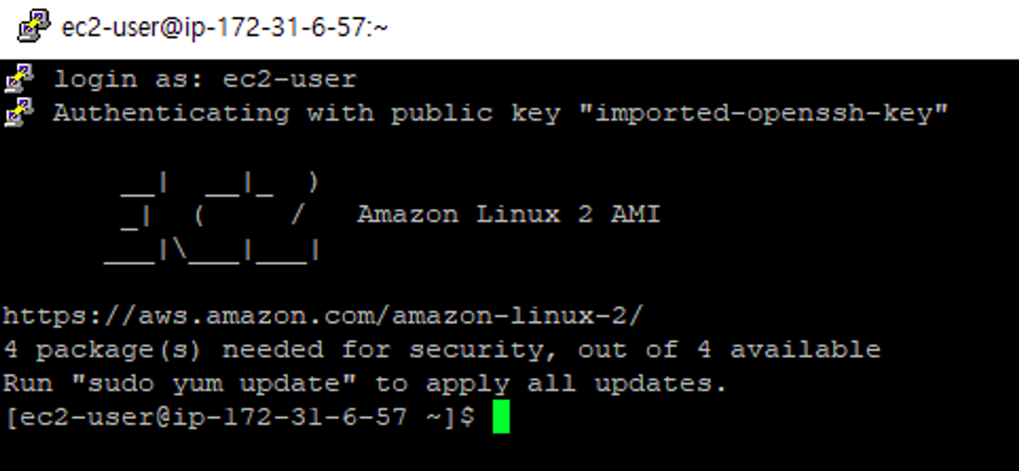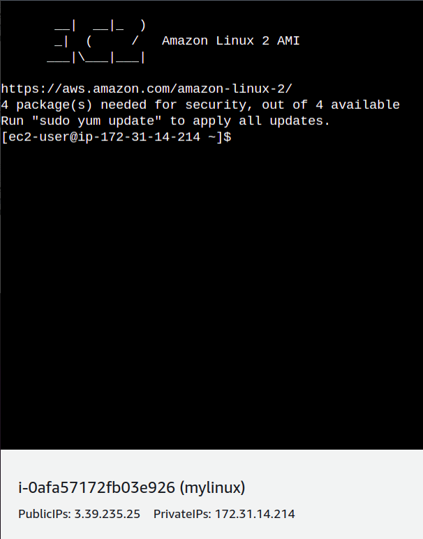 ec2-user 로 로그인하면 바로 접속되는 것을 확인할 수 있다.