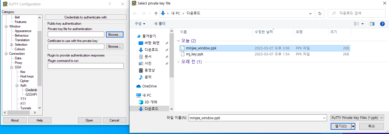 준비물 : 위의 원격 접속과 동일하게, 인스턴스 생성했을 당시의 key 파일이 필요하다. 만약 key 파일 형식이 .pem 형식이었다면 이를 PuTTYgen 으로 한번 PuTTY 형식으로 변환해주어야 한다.