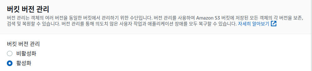 S3에는 버전관리를 해주는 기능이 있다. 데이터의 추가, 삭제 등의 정보를 관리해주는 기능인데 활성화를 해보았다.
