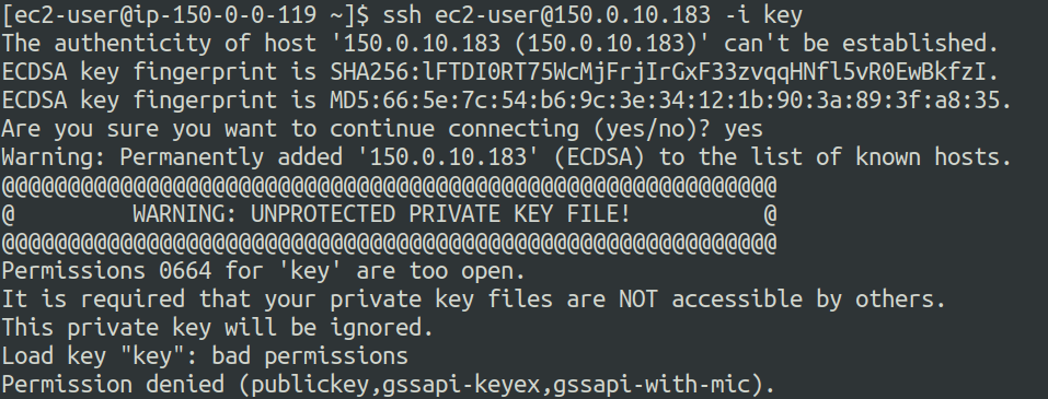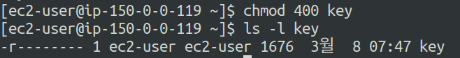 $ ssh ec2-user@프라이빗 IP주소 -i KEY파일 경로