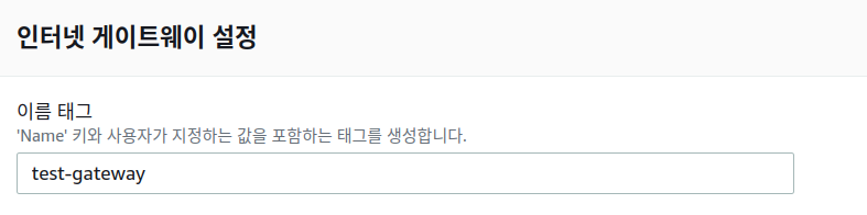 VPC > 인터넷 게이트 웨이 설정 에서 새로운 인터넷 게이트웨이를 만들 수 있다.
