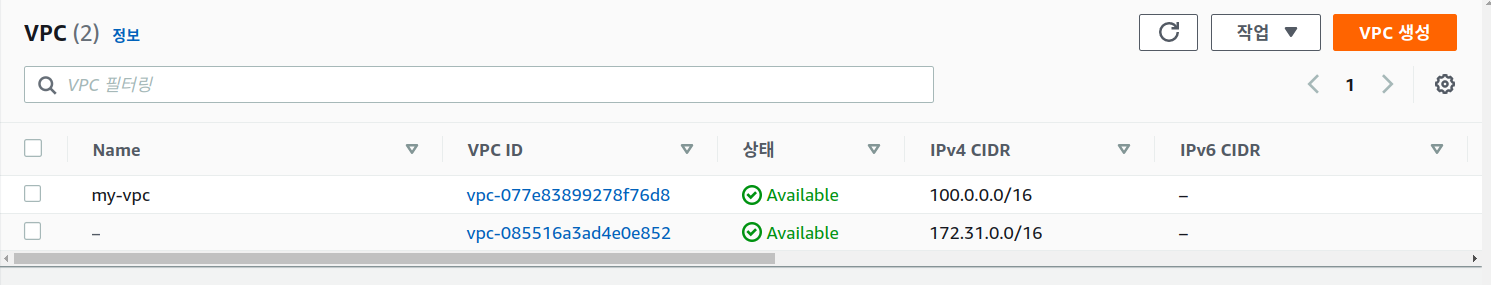 AWS에 접속하여 VPC 를 검색한다. 그리고 우측 상단에 생성 버튼이 있다. 클릭 !