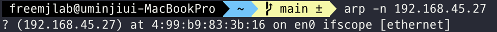 특정 IP 주소에 대한 MAC주소를 확인하는 arp 명령어
