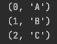 다음과 같이 for문의 인자를 하나만 설정해주면, 결과값으로 튜플이 반환된다.