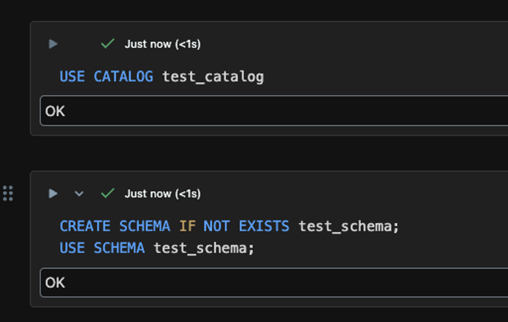 Catalog를 선택 후, 하위의 Schema 또한 아래와 같이 Databricks SQL 문으로 생성할 수 있다.