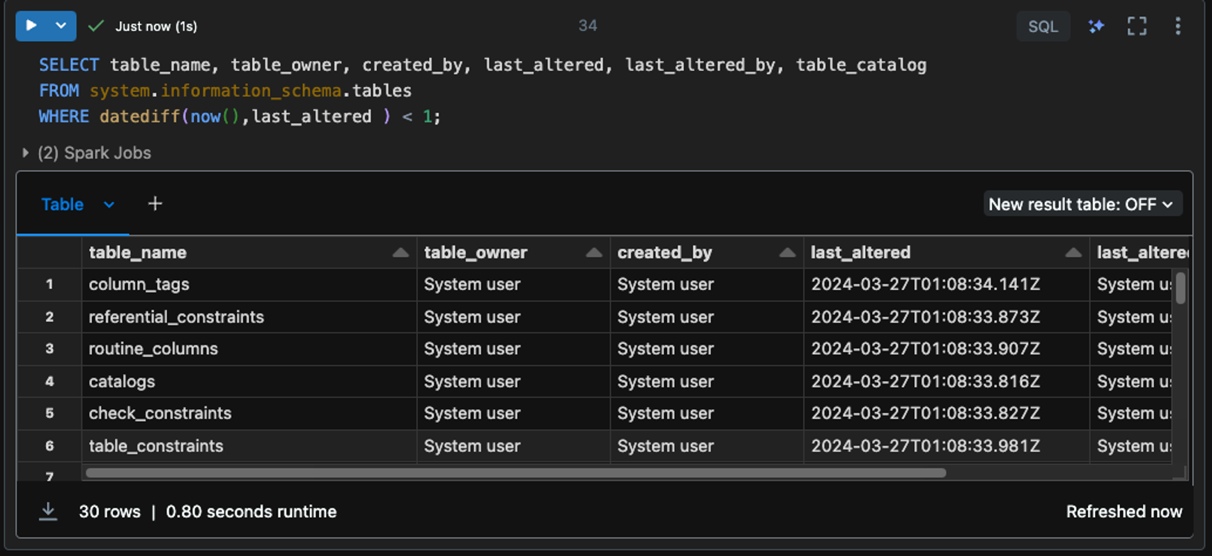 참고로 'System' Catalog의 information_schema 는 Unity Catalog에서 생성된 모든 Catalog에 제공되며, metastore에 속한 모든 catalog들에 대한 정보를 확인할 수 있다.