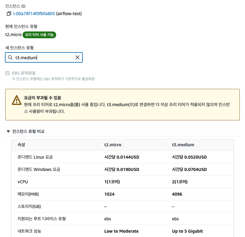 원하는 인스턴스 유형을 선택하고 적용시킨다. 4GB 정도면 충분하겠지..!