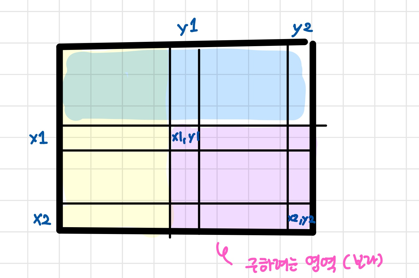 구하려는 영역: 보라색으로 색칠한 (x1,y1) ~ (x2, y2)