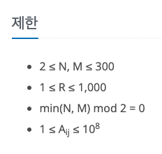 제한 조건에 min(n,m) % 2 == 0 이라고 표시되어 있다 이를 활용해서 바깥쪽 직사각형에서 안쪽 직사각형을 확인한다.