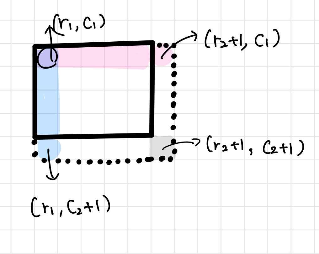 array 가 2차원 배열일 때, (0,0) 부터 (i,j) 까지의 누적합을 구하면 된다.
