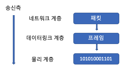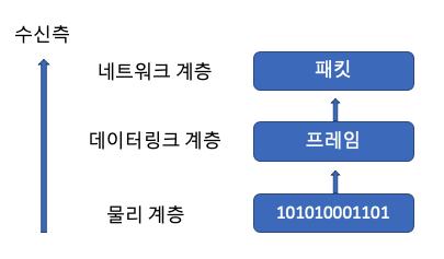 -> 수신측의 물리 계층은 송신 측에서 받은 전기 신호를 0과 1로 구성된 비트열로 복원하여 수신 측의 데이터 링크 계층에 전송한다.