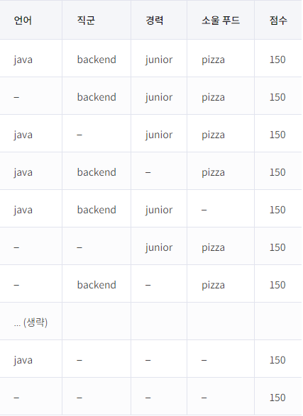 언어-직군-경력-소울 푸드 조합은 key로 사용한다.