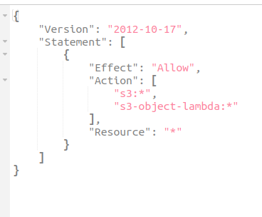 권한의 내용을 자세히 살펴보면, s3: * 라고 표시되어 있는 것을 확인할 수 있다. 즉. S3에 대한 모든 권한이 허용되는 것이다.