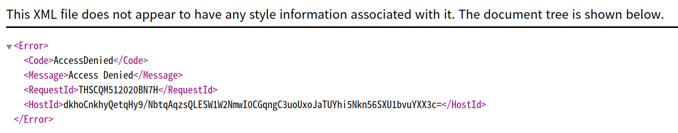 이 중 객체 URL을 누르면 다음과 같이 브라우저에서 접속은 되지만, Access 거부된 것을 볼 수 있다.
