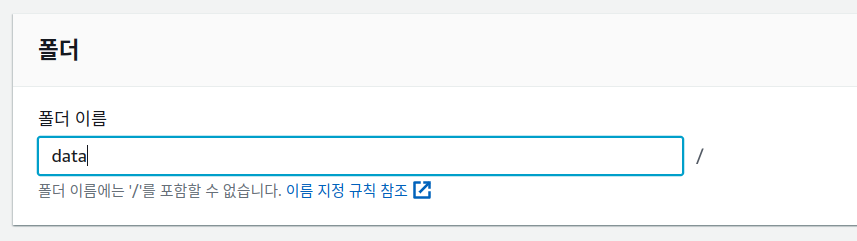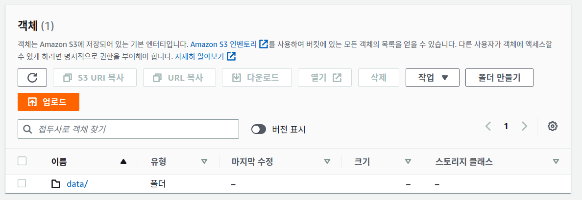 해당 버킷으로 이동한 후 폴더를 생성하기로 한다.