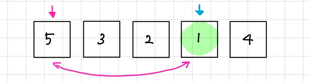 남아있는 원소들 중 가장 작은 4와 5의 위치를 바꿔준다.