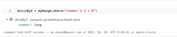 스파크의 핵심 데이터 구조는 불변성을 가진다. DataFrame을 변경하려면 어떻게 변경할지 스파크에게 알려주어야 한다. 트랜스포매이션은 명령이며 실제 수행은 액션이 호출되어야 일어난다. 트랜스포매이션으로 비지니스 로직을 표현한다.