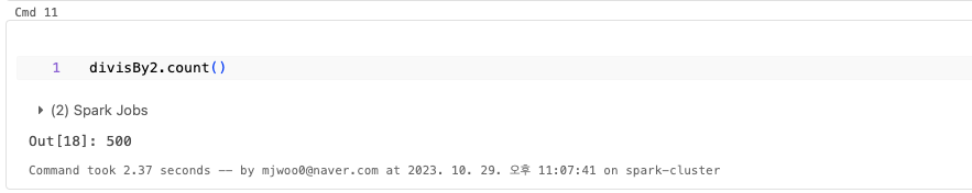 트랜스포매이션으로 논리적인 실행 계획이 세워진 것을 실제로 수행하는 것이 바로 액션이다. 액션을 지정하면 Spark Job 이 생성된다.