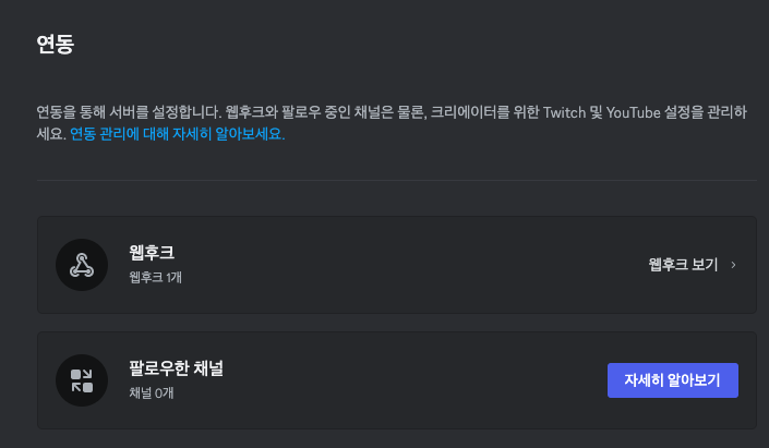 디스코드 채널 > 우클릭 > 서버 설정 > 연동을 클린한다.