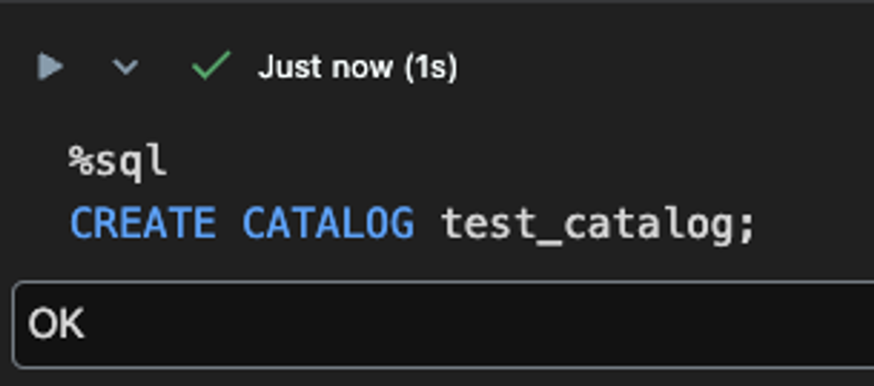 Metastore라는 상위의 개념이 하위의 storage credential 방식 및 external location 으로 등록된 외부 클라우드 저장공간, Catalog 등의 계보 및 메타데이터를 관리한다. Catalog 는 Schema (Database) 보다 상위의 개념이다. Unity Catalog 를 활성화 한 workspace에서 아래와 같이 DDL 로 Catalog를 생성할 수 있다.