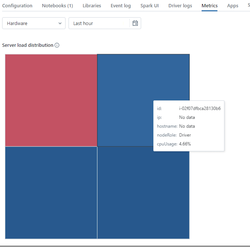 한편으로 다른 3개의 executor 의 CPU 사용률은 1% 대였으므로 분산처리가 균등하게 이루어 지지 않았다. 따라서 이와 같이 분산처리가 원활히 일어나지 않는 현상에 대해 트러블 슈팅해보았다.