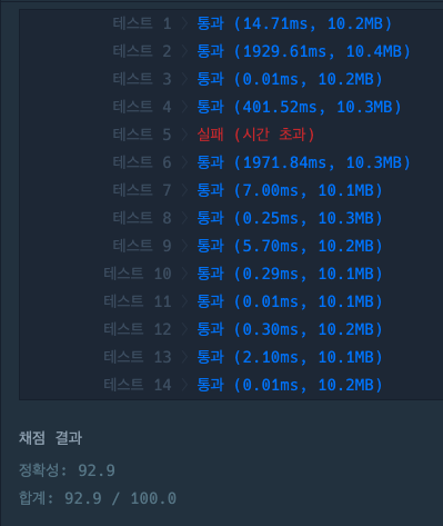 sum() 연산도 O(N) 일 것이므로 아래와 같이 수정하고 테스트 케이스 5번도 통과했다.