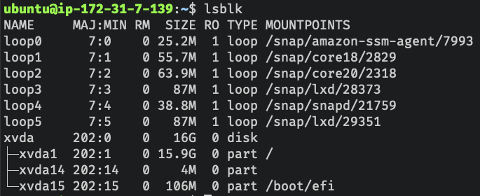 아직 xvda 1 는 7.9G 가 할당된것을 볼 수 있다.